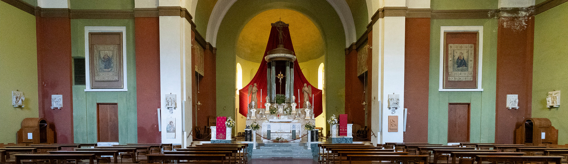 All’interno si possono ammirare i dipinti di Innocente Salvini, mentre all’esterno si notano le lunette scolpite da Egidio Casarotti, che arricchiscono i prospetti e contribuiscono all’armonia dell’edificio.