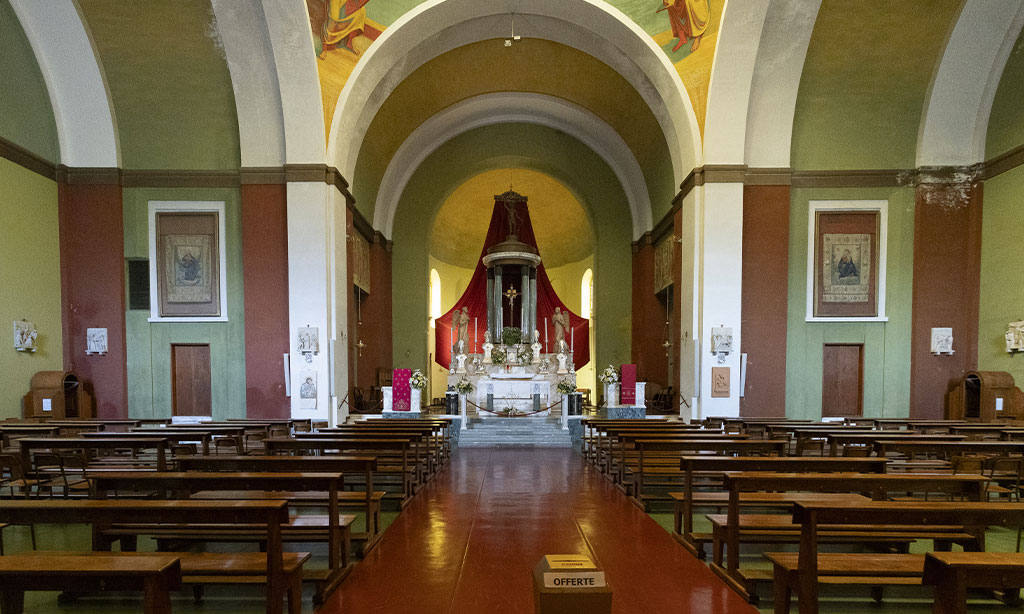 L’altare maggiore si trova di fronte all’ingresso principale.
